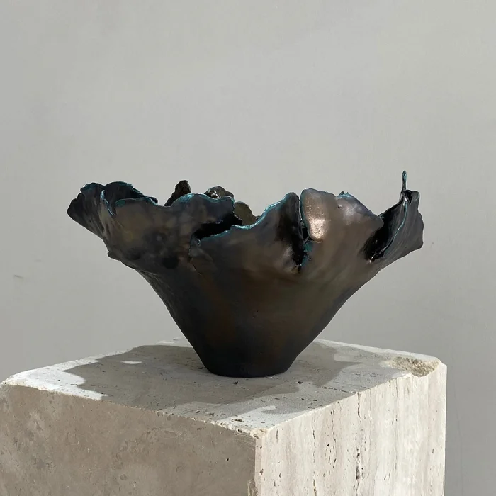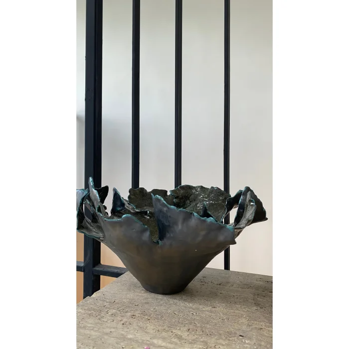 The product is shaped entirely by hand using stoneware mud, which increases its durability at high temperatures. Artistic glaze is used on the surface.