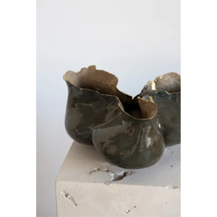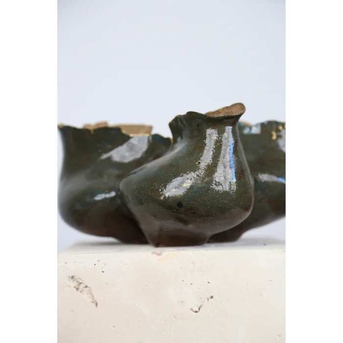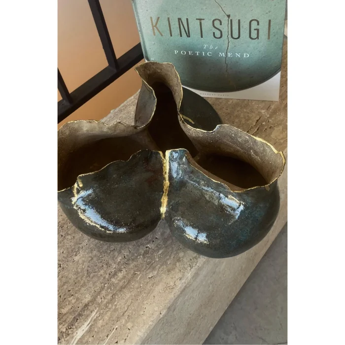 This product is completely handmade using high-quality stoneware material. Each piece is shaped with a unique design and colored with carefully selected artistic glazes. Then, inspired by the Kintsugi technique, which carries the deep philosophy of Japanese art, the fine curves in the product were emphasized.