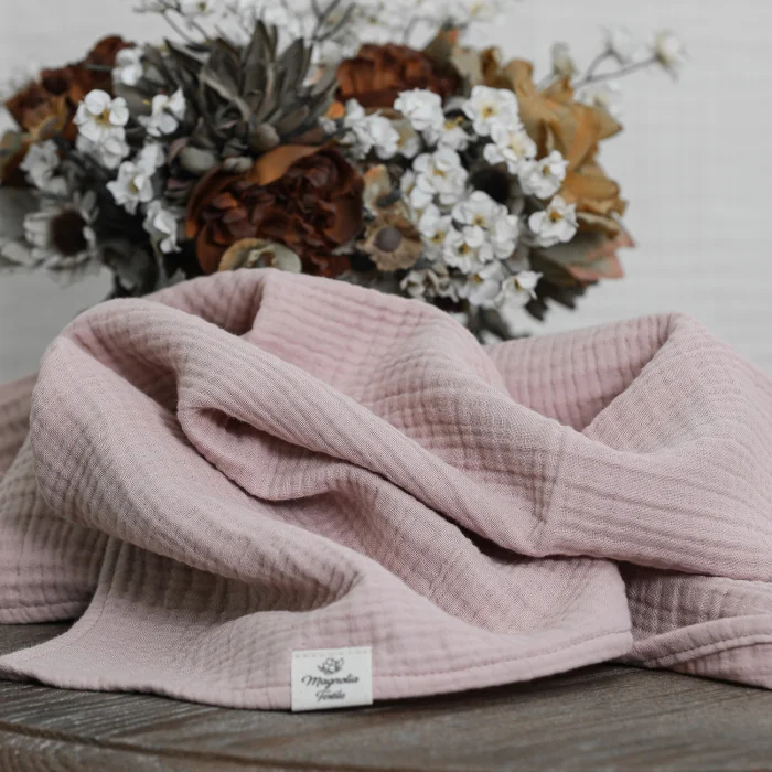 All our muslin products are OEKO-TEX Certified, meaning they're free from harmful substances and gentle on your baby's delicate skin. Made with 100% cotton, our muslin is soft, breathable, and comes in a variety of colors like cream, blue, pink, green, and more. We take pride in our commitment to quality and we believe we offer some of the softest and safest muslin available for your little one.