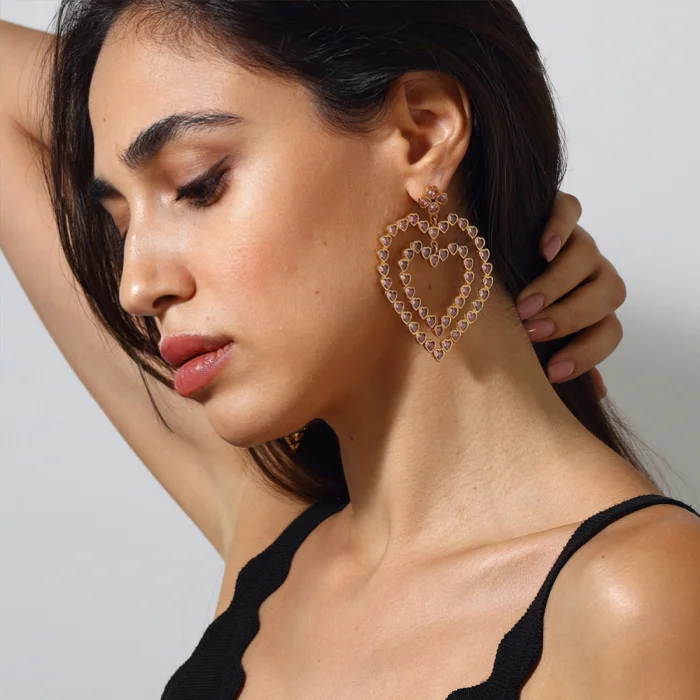 Made of Swarovski stones Free of nickel, lead and cadmium The earring pins are made of non-allergenic gold-plated 925 silver Measures: Length: 7.4 cm Approximate weight per earring: 17 g