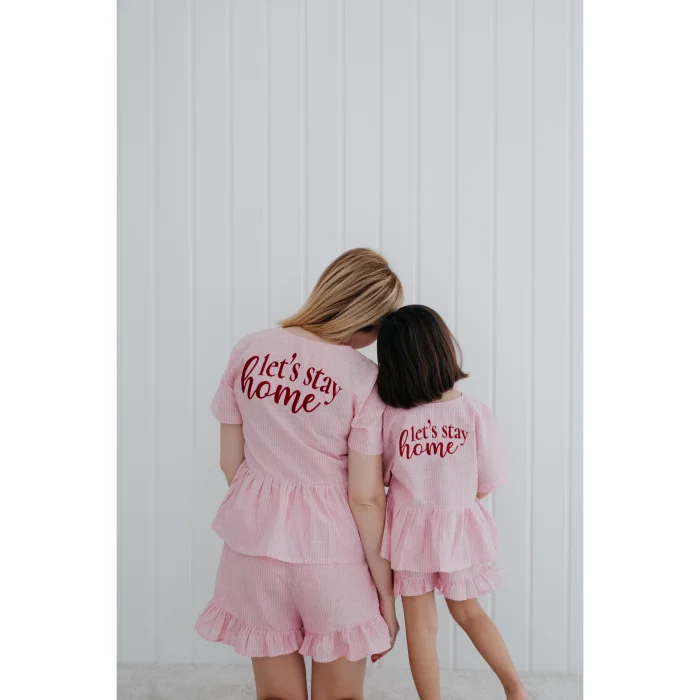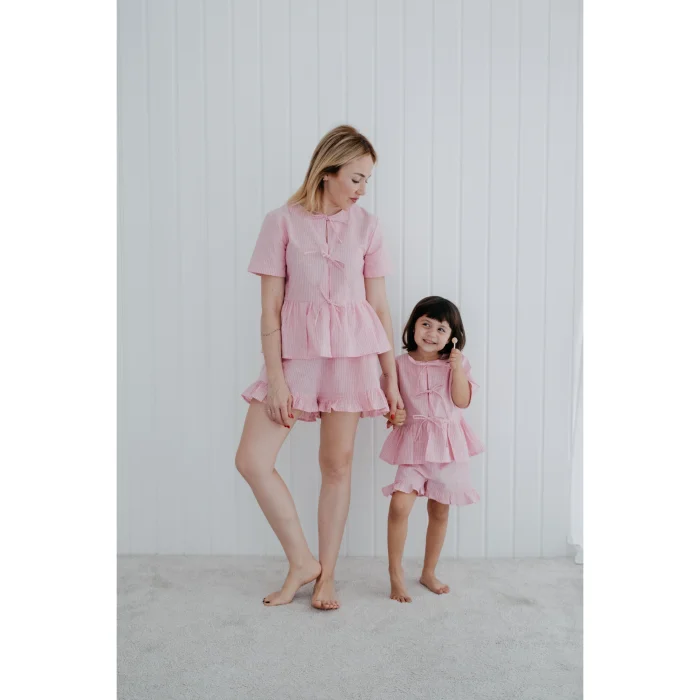 Cotton fabric. Pink and white striped fabric, ruffled shorts, pajama bottoms. Elasticated waist, easy and comfortable to wear. Ruffle details on the hems that expand towards the edges. It is sent in handmade cotton Mama in Love bags. Like all of our products, it is handmade.