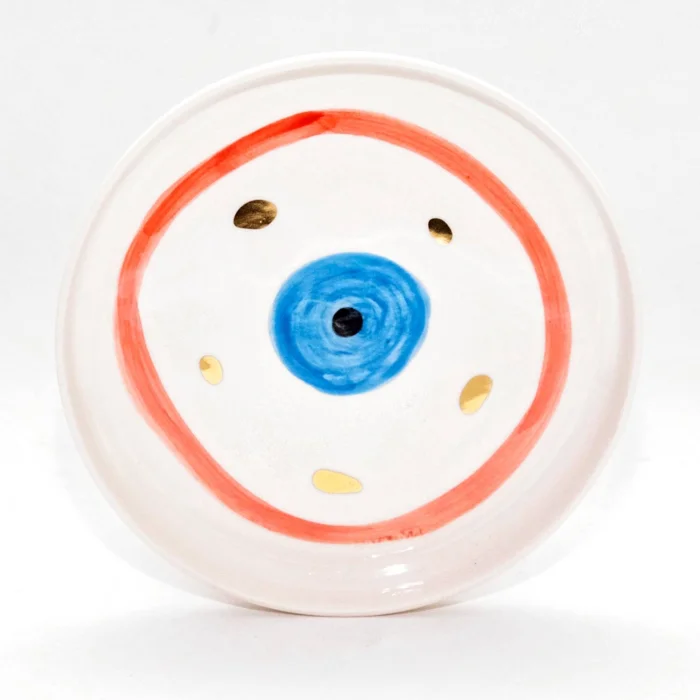 Product: Evil Eye Bead Patterned Gold Decorated Ceramic Dessert Plate