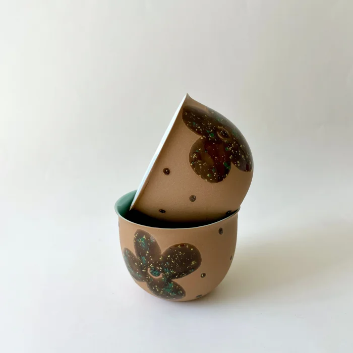 2-piece Set Of Handmade Porcelain Floral Plump Bowls/cups