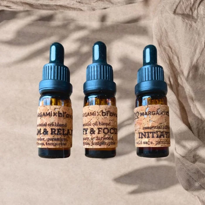 Margami Calm Relax Essential Oil Blend provides relaxing effect with Lavender, calming effect with Geranium and revitalizing effect with Tangerine. Recommended for meditation, deep relaxing and yin yoga poses. Recommended for solstices, lunar cycles, spiritual rituals and meditation that require intention for transformation and change in life.