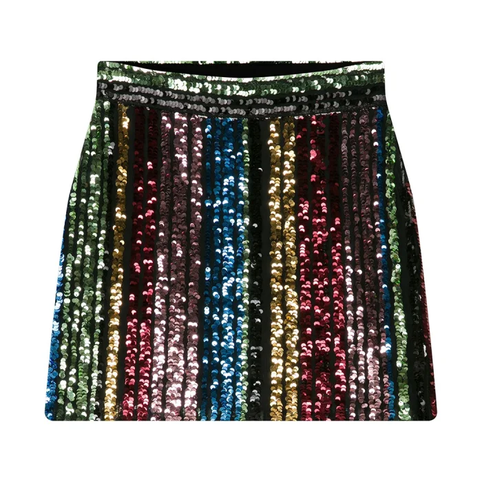 Product: High Waist Colorful Stripe Sequin Mini Skirt