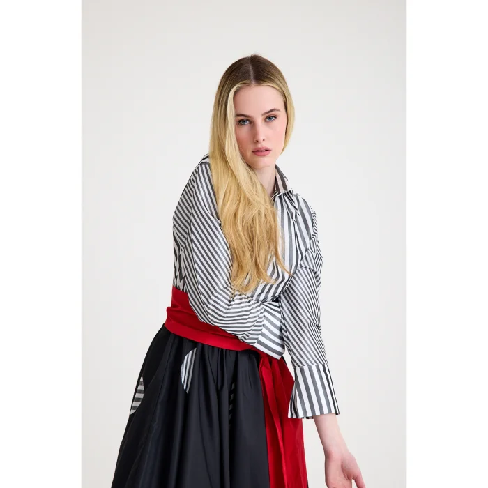 • shirt part is made of white & dark grey striped taffeta
