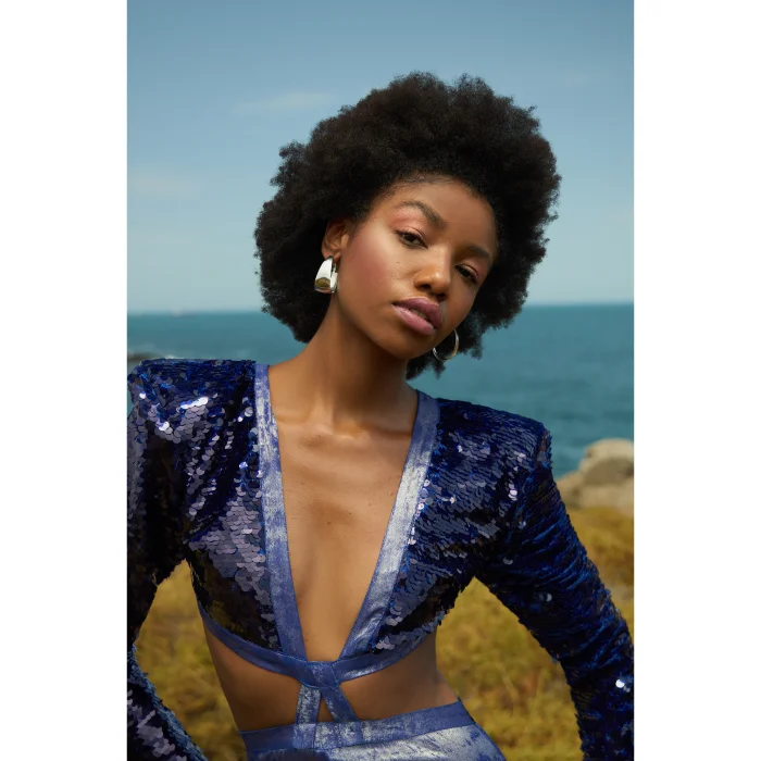 Waist And Back Open Sequined Jumpsuit Model: Height: 177 Chest: 83 Waist: 60 Hips: 90 Model'S Product Size: 36 Top: Sequined Bottom: 95% Polyester 5% Lycra It İs A Personalized Design. The Exchange Period İs 14 Days. No Returns.