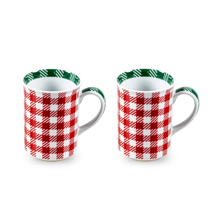 SUE RED PLAID PATTERNED PORCELAIN MUG SET
