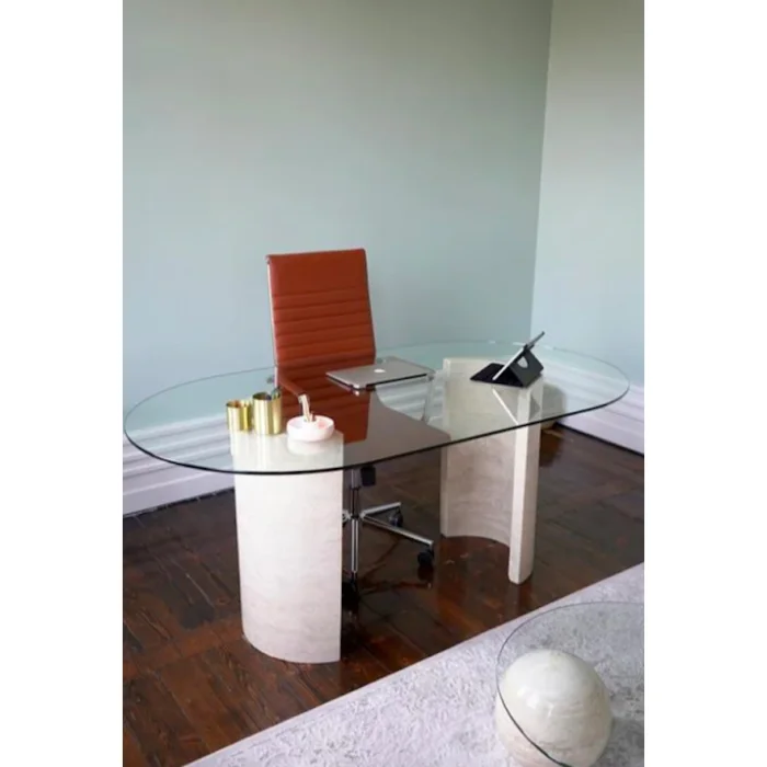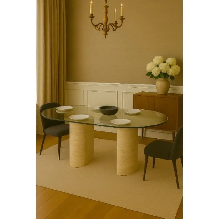 190 x 90 x 75 cm Travertine is a natural and durable rock that is shaped by the fire of volcanoes and bears the traces of thousands of years. This material adds value to your home both aesthetically and functionally. As Miarik Design, we offer you simple and stylish travertine table models by carefully processing travertine. Travertine stones are patiently processed by hand under harsh conditions. Our quality craftsmen painstakingly cut, shape, polish and put the finishing touches on these materials. Thus, we preserve the natural and organic forms of travertine and create furniture designs suitable for your home. Since the stone is a natural material with texture, color tones and vascular pathways, it makes each product unique and unique. In addition, the surface of the stone is matte and has unique tiny pores. These differences are an indicator of the naturalness of travertine. Please place an order taking these into account. If you wish, the pores of the stone can be closed, and you can have matte or polished options of the surface with a special order. Our recommendation is that it be porous and in matte form. It will add a natural elegance to your home.
