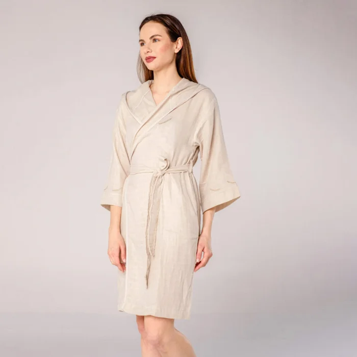 Başak Embroidered Muslin Bathrobe is made of muslin fabric.