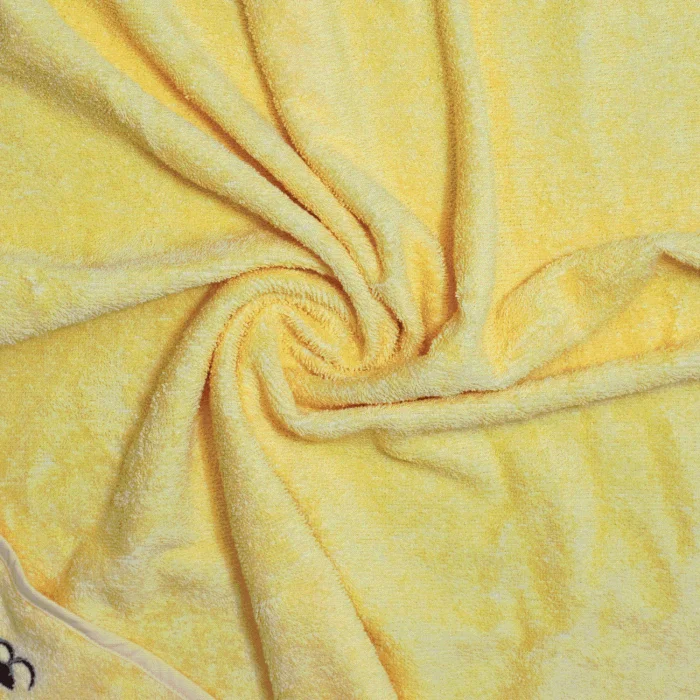 Specially designed for your baby's delicate skin, this velvety towel wrap made of 100% cotton offers a soft touch and high absorbency for a comfortable drying experience. Its cheerful yellow color and 3D embroidered cat design turn post-bath time into a fun and memorable moment.
