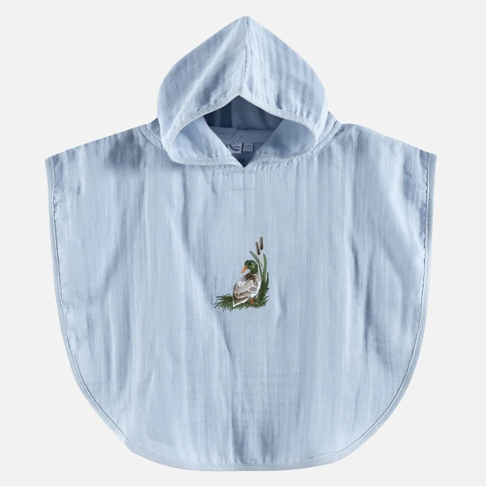 Product: Personalized Duck Embroidered Pool, Beach, Bath Hooded Cover-up Poncho For Girl & Boy- Muslin And Cotton Kimono Poncho