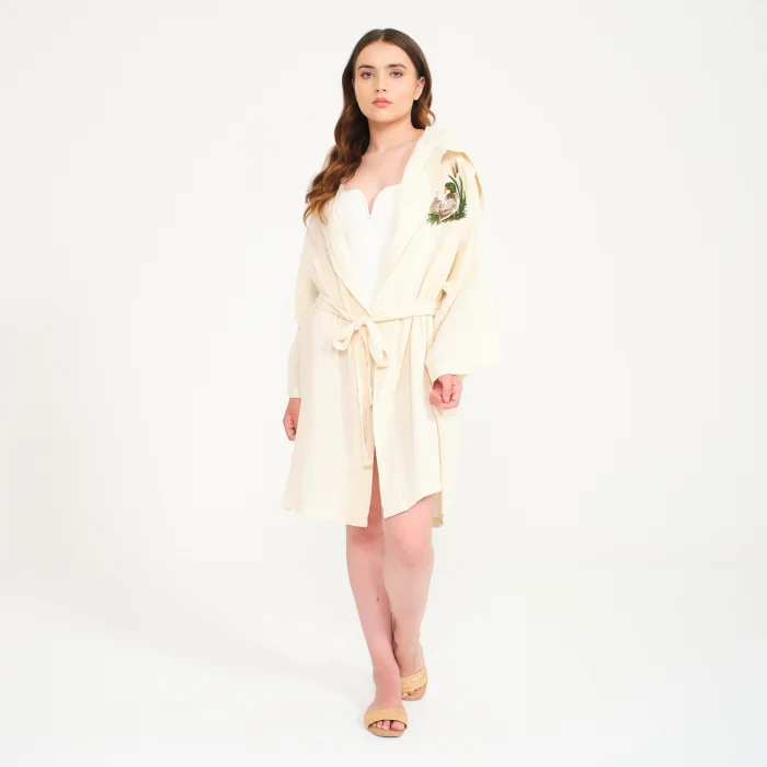 Product: Personalized Duck Embroidered Pool, Beach, Bath Hooded Cover-up Robe For Women- Muslin And Cotton Kimono Bathrobe