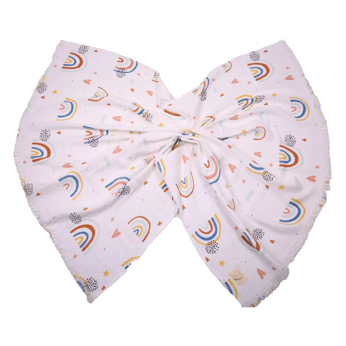 Product: Rainbow 4 Ply Tasseled Muslin Cover Blanket
