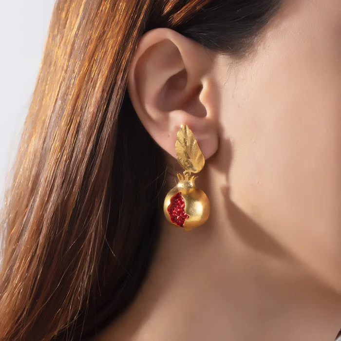 Product: Pomegranate Dangle Leaf Earrings