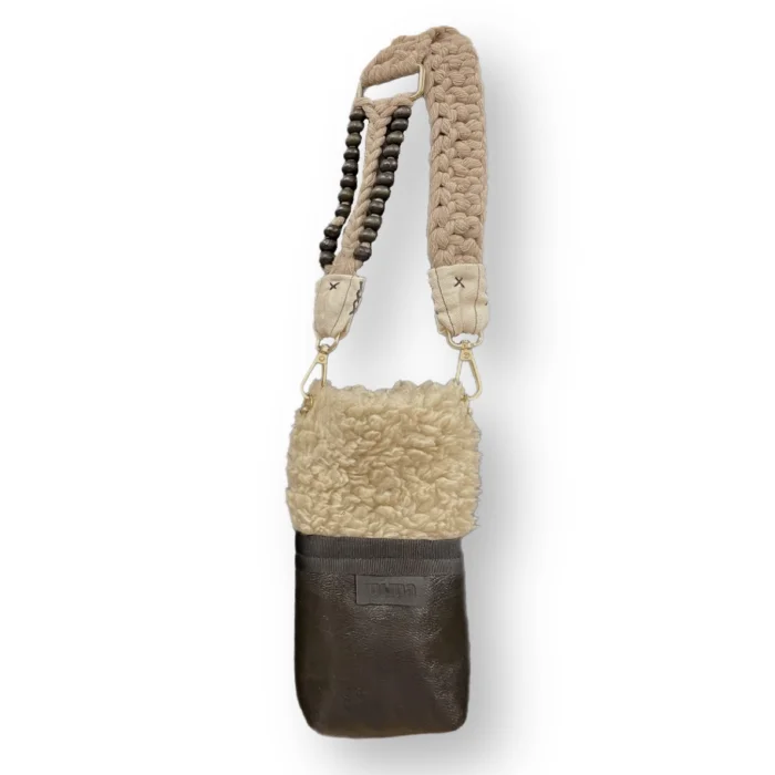 wishes, you can also use the knitting, you can also use the handle part by removing it from the bag and attaching it to your phone case. Plush, artificial leather, linen fabric are used and stand out with their hand-knitted detail.