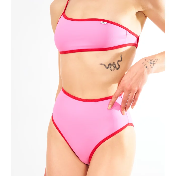 While wrappingyour waist with its high waist bikini bottom design, it makes you feel comfortable thanks to its intense coverage and recovery feature. Enjoy this summer with the Min. Swimwear Everymood Cross Bikini Set!