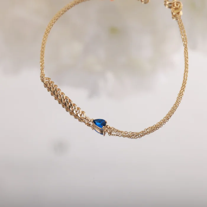 14k Gold Drop Sapphire Stone Chain Bracelet