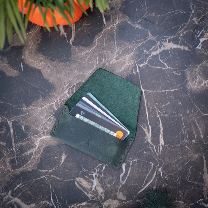 minimal X Manual Card Holder Material: Genuine Calf Leather Leather thickness: 1.3 - 1.4 mm Closed product dimensions: 11.5 x 6.5 cm Product Weight: 25 grams Capacity: 3-10 cards and several banknotes It is normal for it to be tight at first use. Based on your usage over time It will take shape and reach its full capacity. Minimalist and Stylish Design. It is real leather and handmade. Our products are sent as a standard gift package. NOTE: Since it is real leather, there may be slight color tone differences. NOTE2: Products other than Leather Card Holder are used for visual décor purposes and are not included.