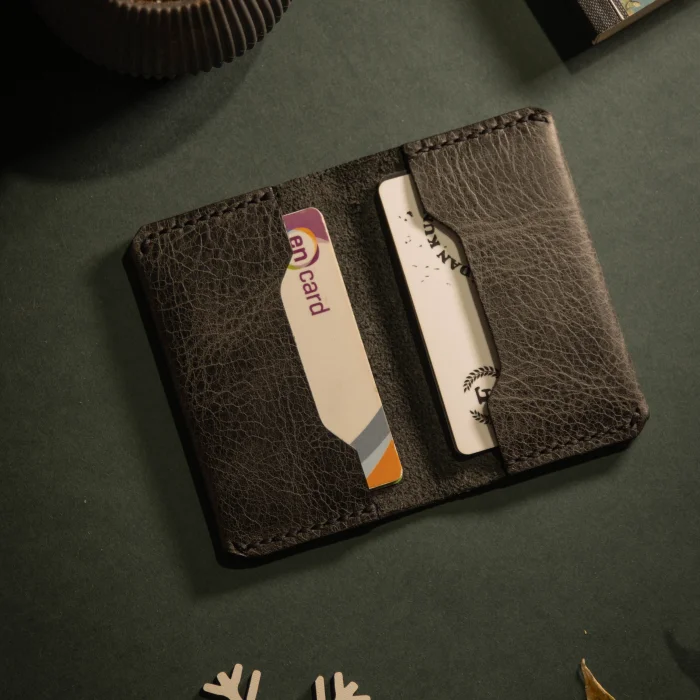 minimal X Fold Folding Card Holder Thin, useful and stylish card holder... Material: Genuine Calf Leather Closed Dimensions: 10.5 x 6.5 cm Leather Thickness: 1.3 - 1.4 mm Blank Thickness: 5.2 mm Its maximum capacity is 9-10 cards. Or a couple of banknotes along with 7-8 cards. Minimalist and Stylish Design. It is real leather and handmade. Our products are sent as a standard gift package. NOTE: Since it is real leather, there may be slight color tone differences. NOTE2: Products and pens other than the Leather Pen Holder are not included in the use of visual decoration purposes.