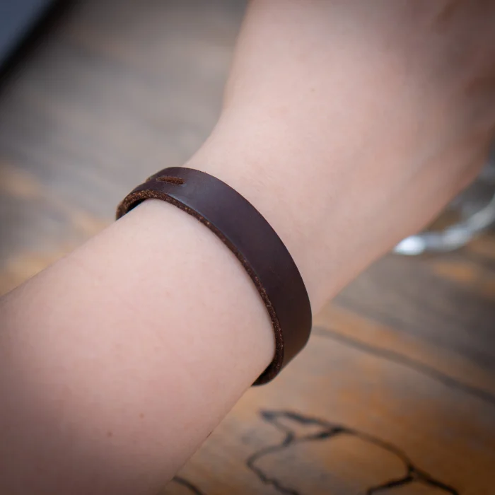 Product: Leather Wristband - Solid Design With Hook - Minimalist - Genuine Leather And Handmade (long 17-19 Cm)