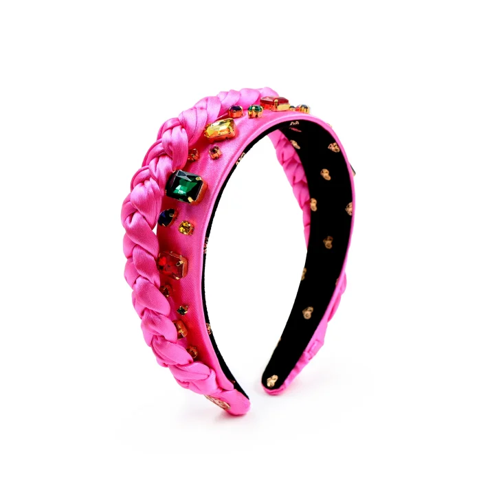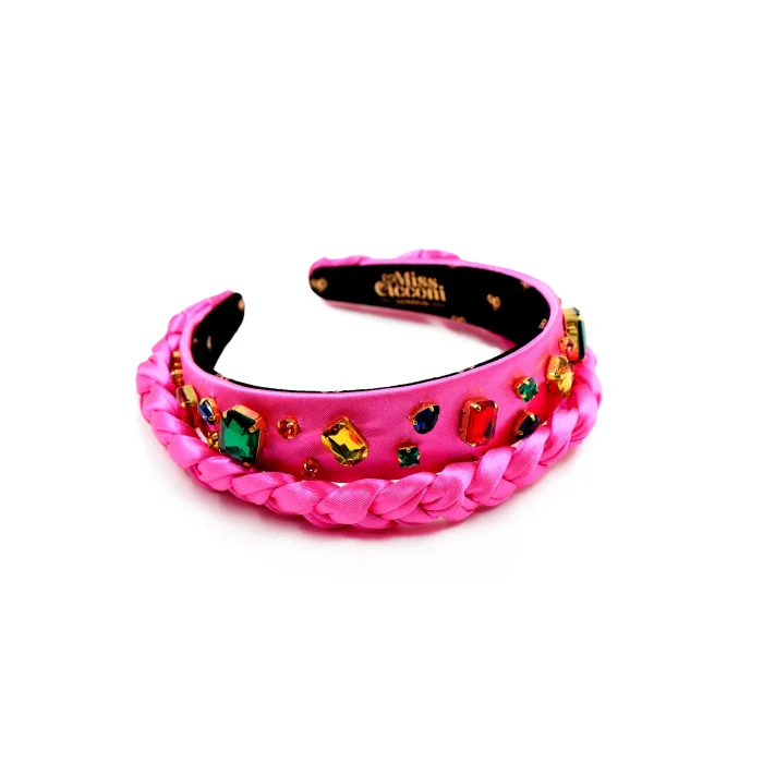 Product: Alessia - Headband - Fuchsia Silk With Crystals