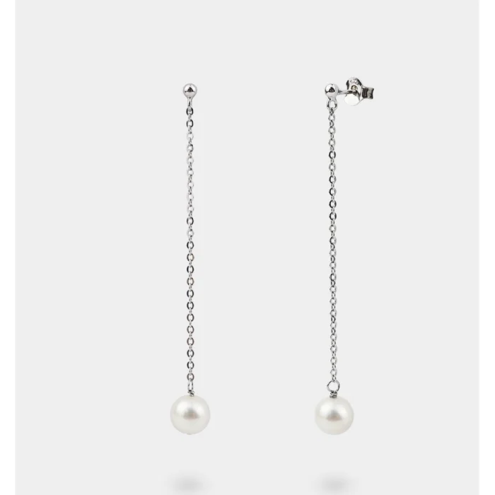 Rhodium plated on 925 Sterling Silver, which is resistant to tarnishing. Natural Freshwater Pearl