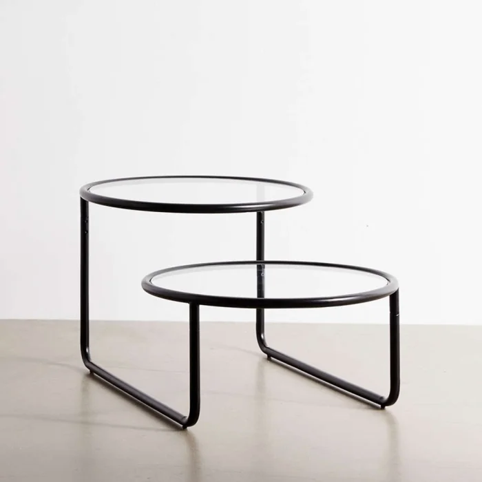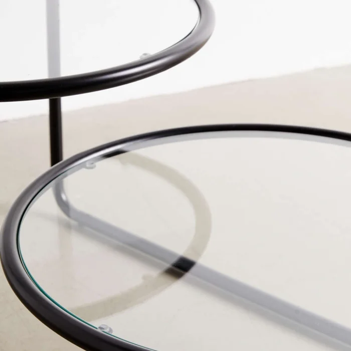The metal parts are painted with electrostatic oven paint. The glasses on the tables are 6 mm thick transparent glass.