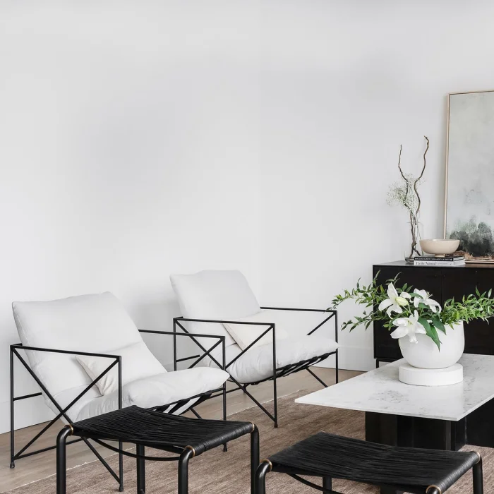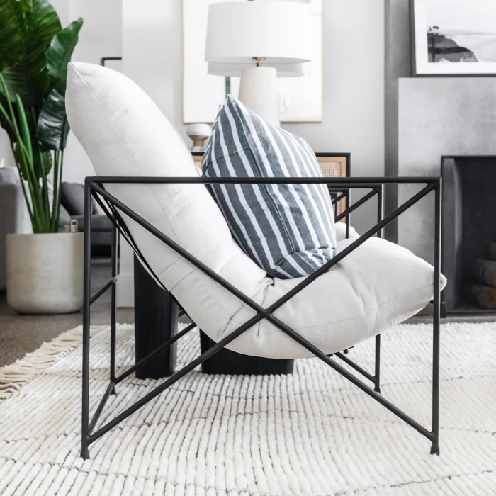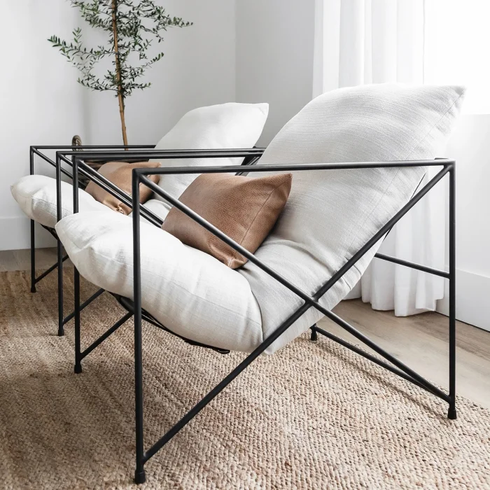 Its frame, which consists of metal material, is painted with oven paint in matte black. The padding pillow seat and back base are combined.