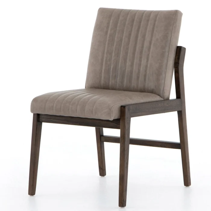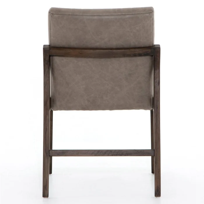 The wooden parts made of beech wood are painted with walnut varnish. The seat and back are made of artificial leather. It can be used as a single or dining table chair.