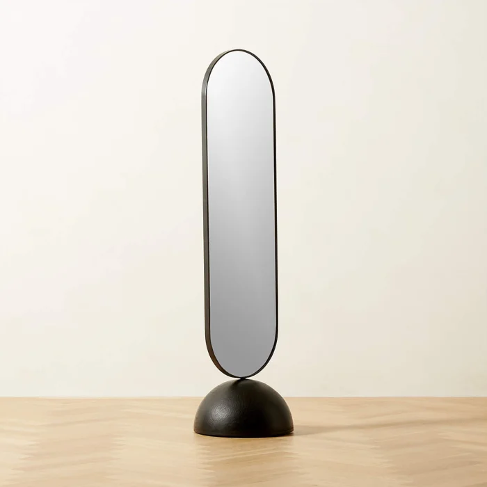 The mirror glued to the metal frame is 4mm thick. You will love this full-length mirror that does not take up space in every area of your home.