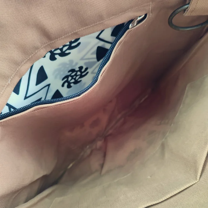 Material: Recycled, vegan, water-repellent and high-weight special fabric. The same fabric is used in all parts, including the lining.