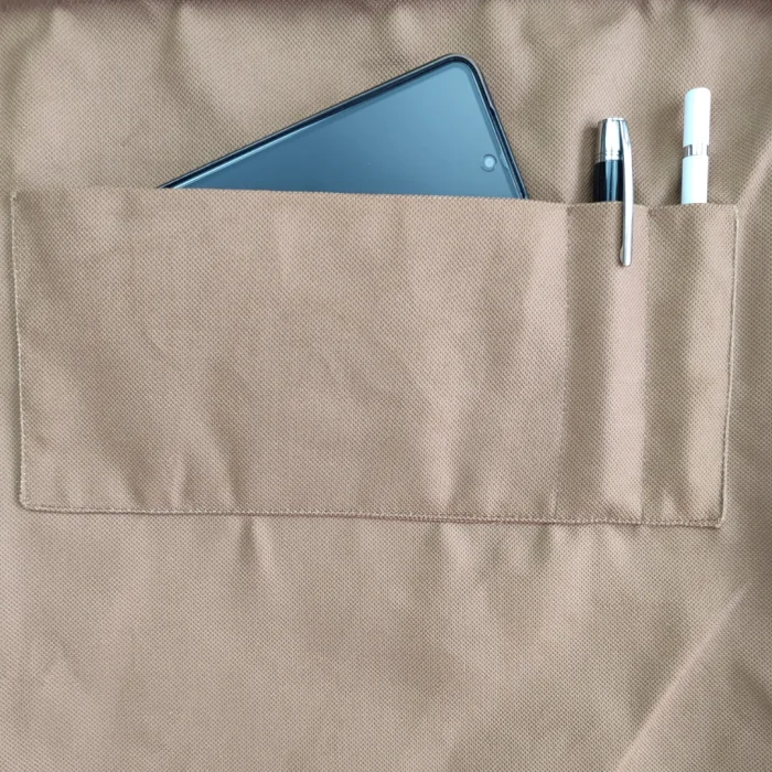 Compartment pocket: 20 cm* 10 cm open pocket, 2 compartments pen pocket next to it.