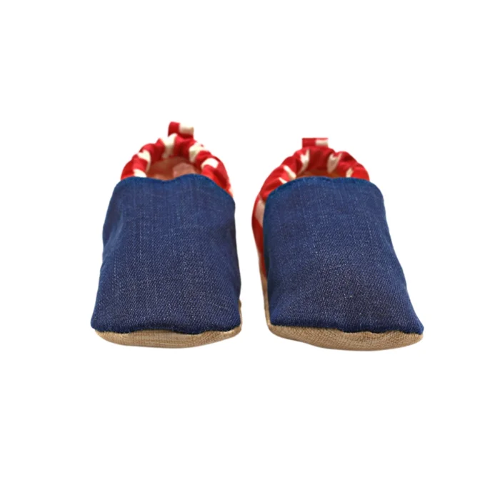100% Cotton Gabardine Fabric . %100 Cotton Denim Upper Surface. 100% Cotton soft fabric inner lining. It is comfortable with its breathable fabric. It is handcrafted. Non-slip outsole for traction. Easy to put on and take off. Ease of dressing with top pull ring. Lightweight insole that supports the foot. The wrist part is elastic, providing ease of putting on and taking off. Double layer cotton upper. Light and breathable feature that keeps little feet comfortable all day long. Does not contain polyester. It does not contain harmful chemicals. It is suitable for daily home and nursery use. It is suitable from the first step of the 0-4 age group. Since the baby rubber is used, it does not tighten and does not come off. t is suitable for machine washing.