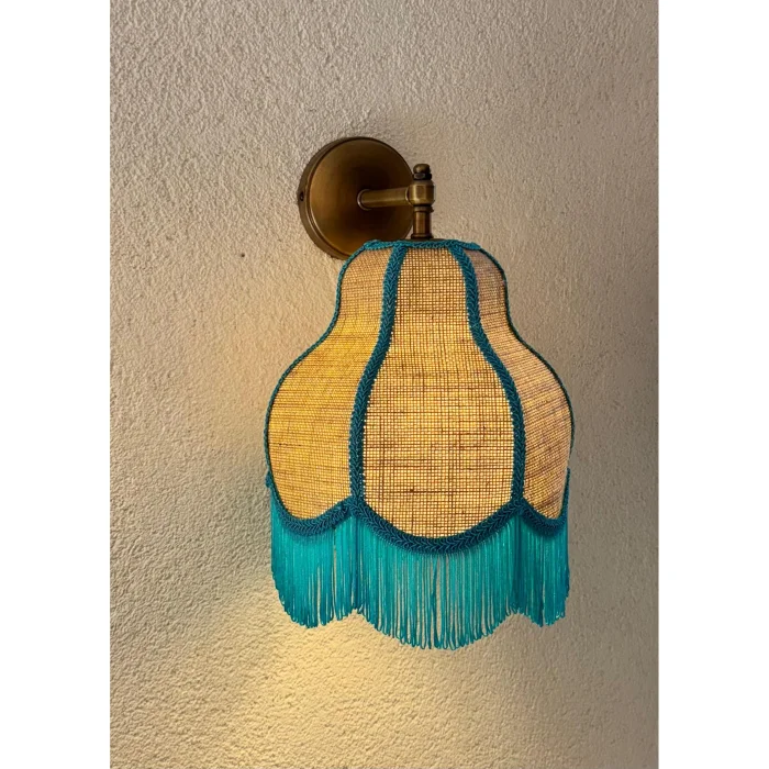 The combination of brass body pieces and natural jute fabric with tassels is a complementary part of your decoration.