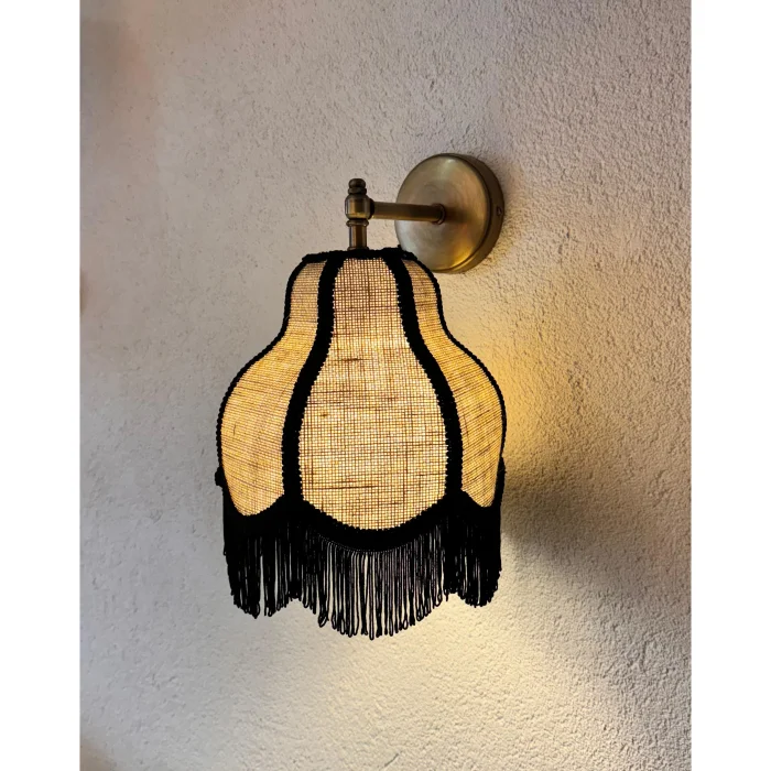 The combination of brass body pieces and natural jute fabric with tassels is a complementary part of your decoration.