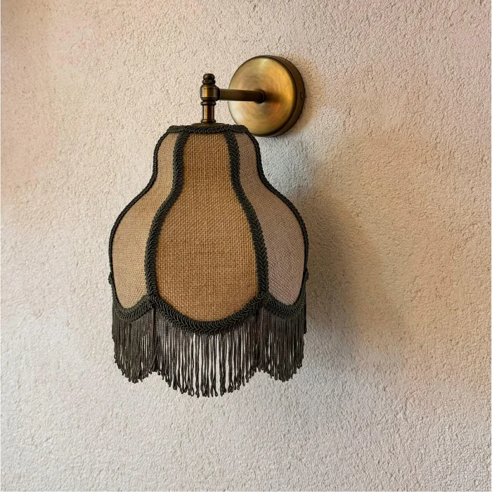 The combination of brass body pieces and natural jute fabric with tassels is a complementary part of your decoration.
