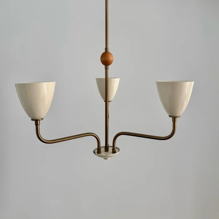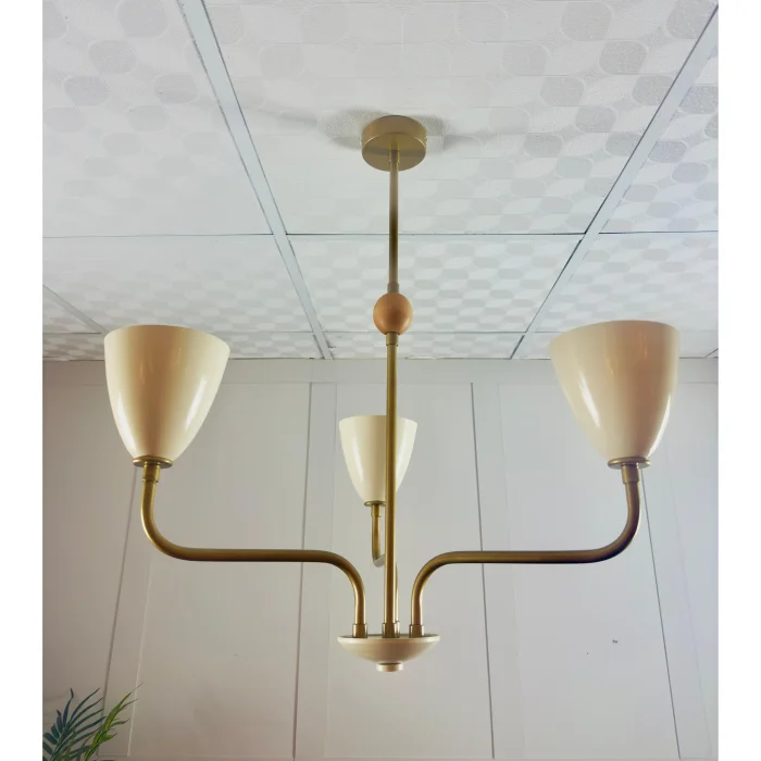 Product Dimensions: Width: 60 cm Depth: 60 cm Length: 70 cm Materials: Natural Wood, Brass veneer and electrostatic painted metal E-27 Lamp Holder