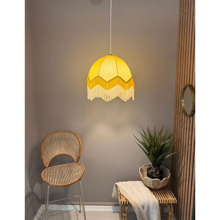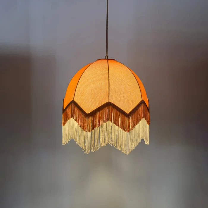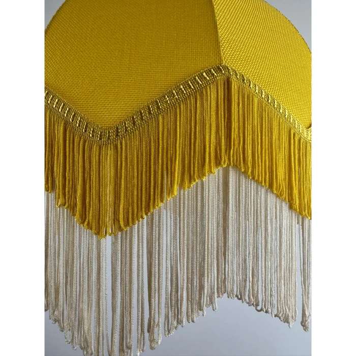 Our iconic Lorenzo fabric chandelier adopts the charismatic details of Italian design with its distinctive and captivating shape. Product Dimensions: Width: 40 cm diameter Height: 24 cm + 18 cm tassel Production is made to order.