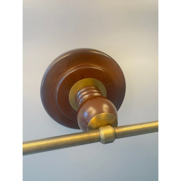 Twin sconces are a unique lighting and wall décor with brass pieces, linen fabric lampshade and natural wood details.