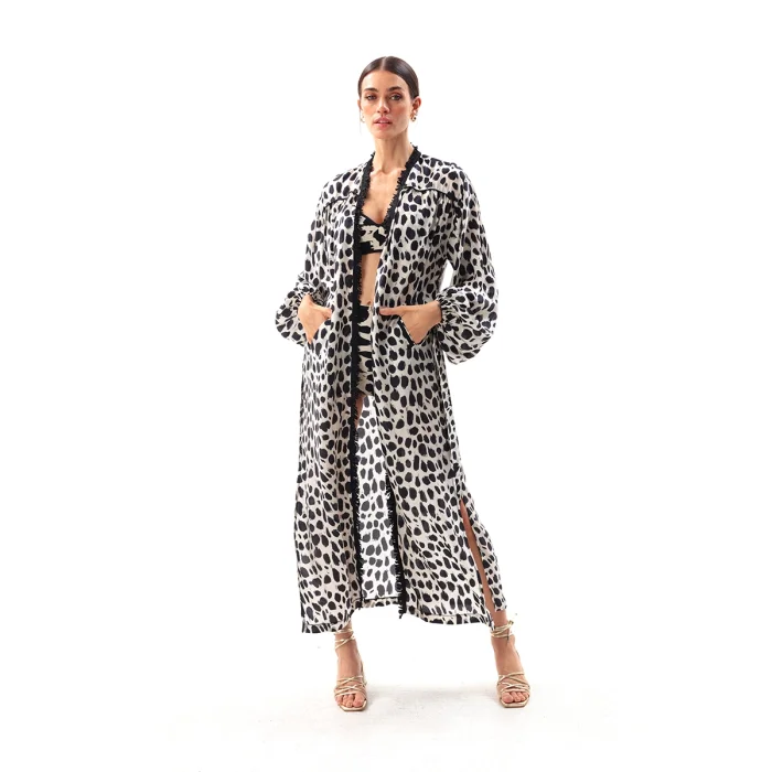 • Wide arm flywheel detailed. • Belted waist detail. • Pompom and edge decoration details. • Waist belted. • Medium-weight construction. • Silky fabric does not sweat, breathes, high comfort is guaranteed. • Full length 135 cm from the shoulder. • 100% Cupro • The product is one size. • Model dimensions: 89/61/92, Height: 1.79 cm. Fabric information: This garment is made from all-natural ingredients and the highest quality Vegan fabric Oeko Tex 100 Certified Vegan Fabric 100% Recyclable & Sustainable This carbon-footprint-free material is made with an innovative vegan textile process that ensures no animal materials from start to finish.