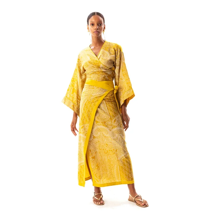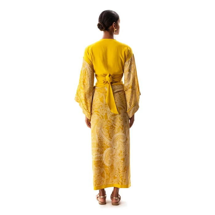 •Tie front style crop top. •Featuring wide sleeves. •Can be worn as envelope style by wrapping around on waist. •Soft silky vegan fabric. • The product size worn by the mannequin in the picture is XS-S • Model dimensions: 83/58/91