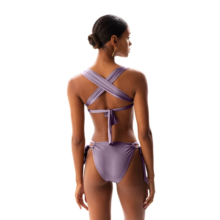 •Underwire shell bikini with ruched cups. •Adjustable criss cross straps. •High rise / open tunnel tie side bottom withmoderate coverage. •Smooth stretch lining for extra comfort. •Removable paddings. • The product size worn by the mannequin in the picture is size XS (34) • Model dimensions: 83/58/90