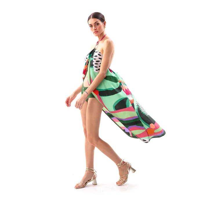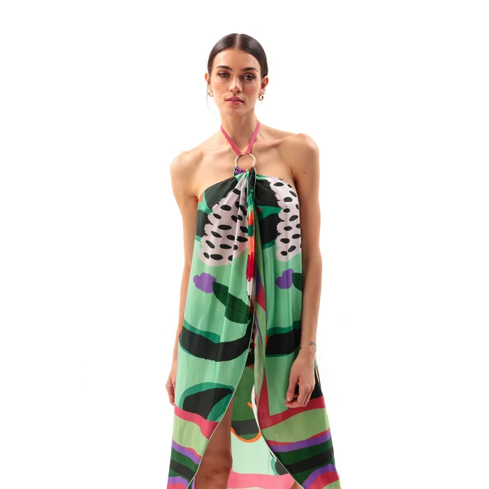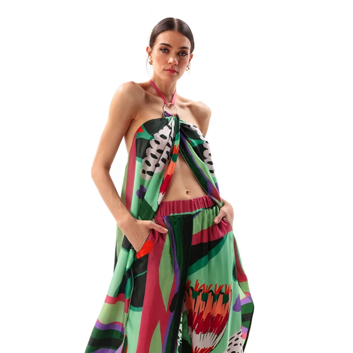 • Long low-cut blouse. • The gold ring is tied at the nape of the neck with piping extending from the accessory. • Medium-weight construction. • Silky fabric does not sweat, breathes, high comfort is guaranteed. • 100% Cupro. • The product size worn by the mannequin in the picture is size XS/S (34/36). • Model dimensions: 89/61/92, Height: 1.79 cm Fabric information: This garment is made from all-natural ingredients and the highest quality Vegan fabric Oeko Tex 100 Certified Vegan Fabric 100% Recyclable & Sustainable This carbon-footprint-free material is made with an innovative vegan textile process that ensures no animal materials from start to finish.