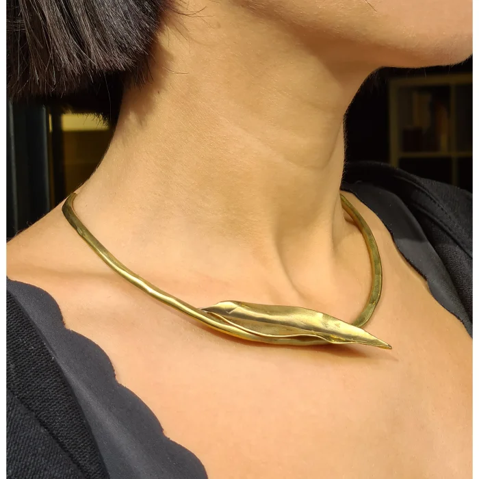 Product: Brutalist Choker Necklace With An Olive Leaf
