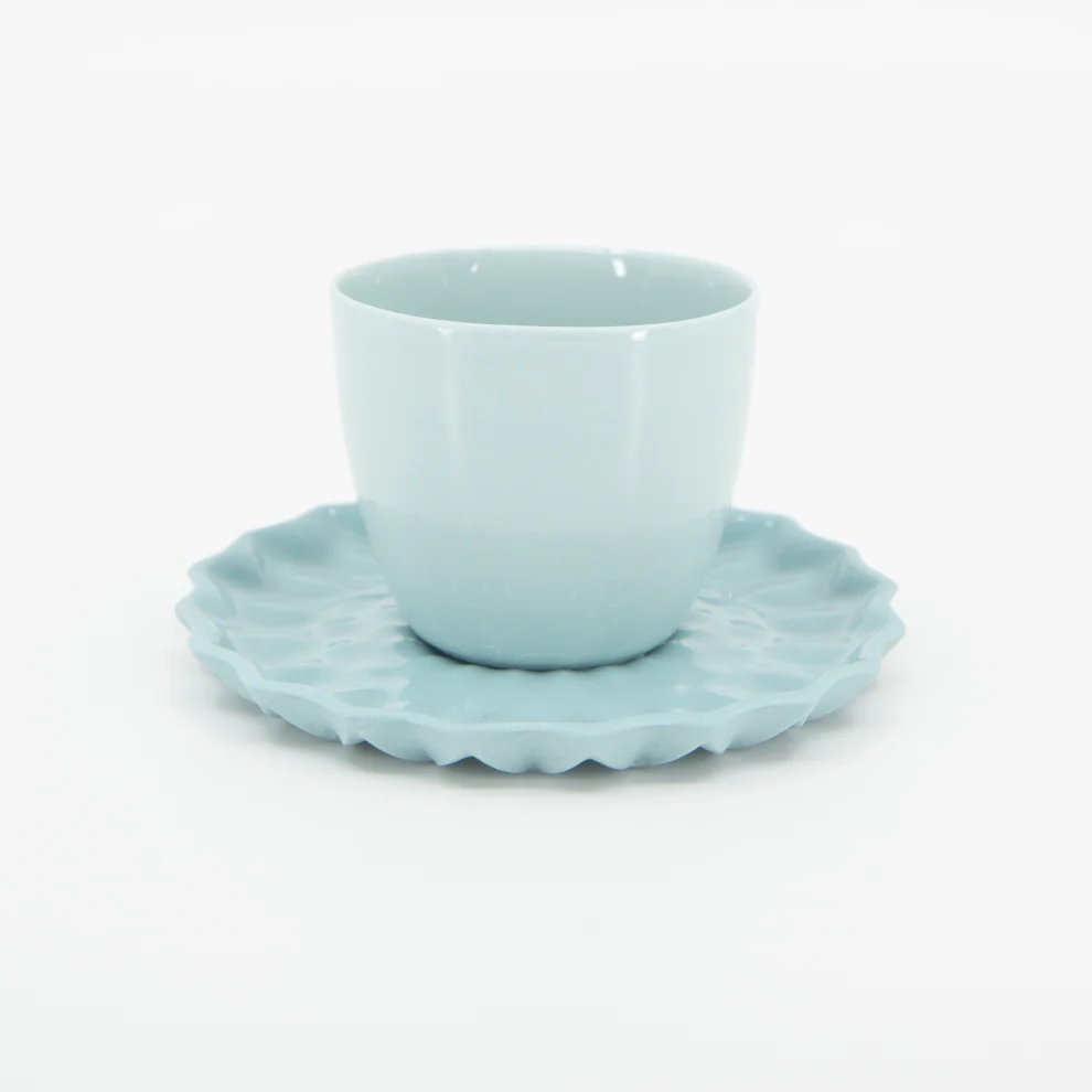 It is produced by casting technique from Limoges Porcelain clay and is handmade by firing in a high firing program. Suitable for food use inside, matt glazed, outside matte, natural.