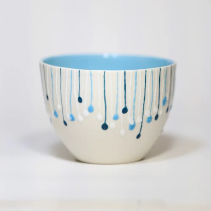 It is produced by casting technique from Limoges Porcelain clay and is handmade by firing in a high firing program. Suitable for food use inside, matt glazed, outside matte, natural.