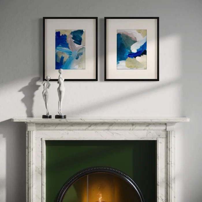 Blue Abstract series is prepared as acrylic painting on paper. It is edited as a digital print.