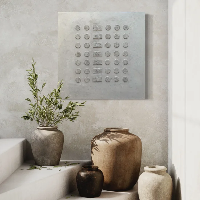 - Mixed technical textured acrylic-plaster work on canvas is prepared by Nakalend.