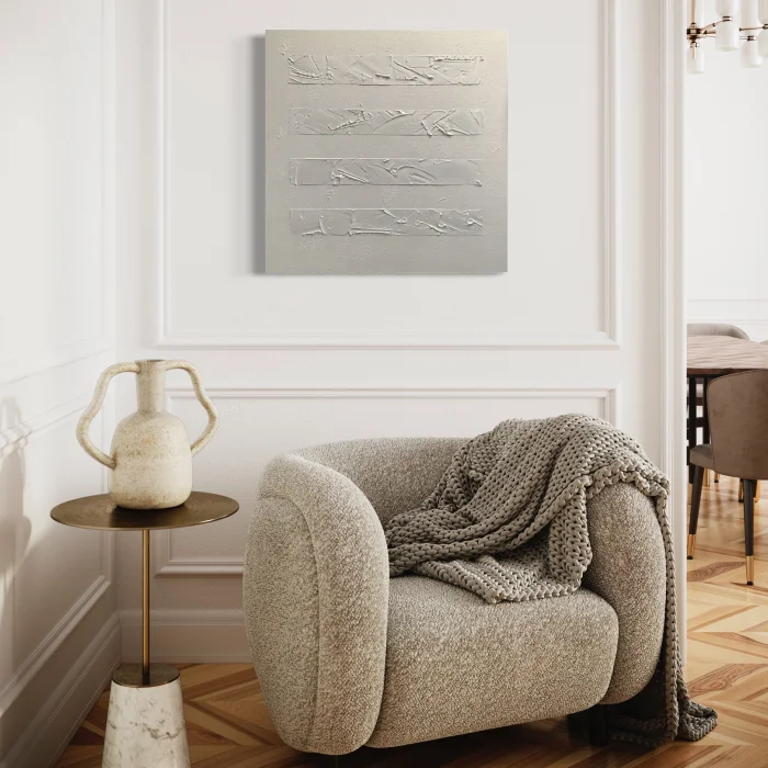 - Mixed technique textured acrylic-plaster work on canvas is prepared by Nakalend. It is